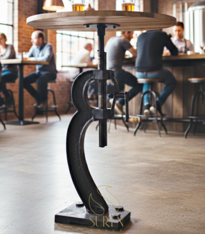 Height Adjustable Distress Cast Iron Regular Cum Bar Table