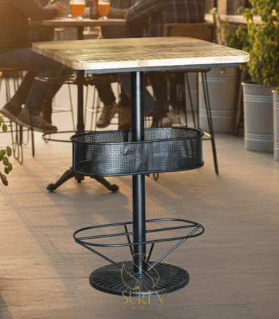 Unfinished Mango Wood top with Ms & Casting Base Bar Table