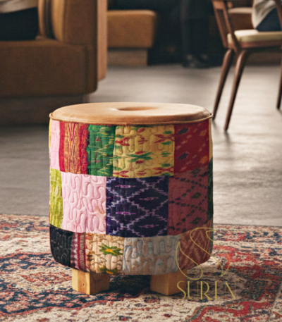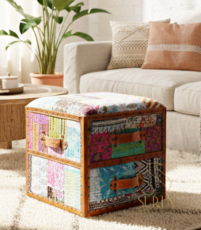 Traditional Fabric Hand Stitched Drawer Design Stool