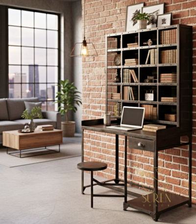 Rustic Finish Metal Unique Design Hutch Cum Display Rack