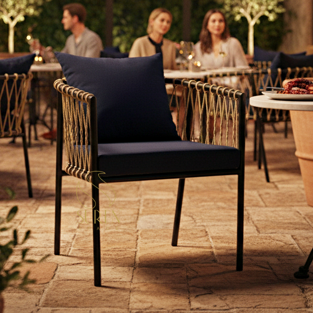 Black Metal Rope Design Upholstered Chair