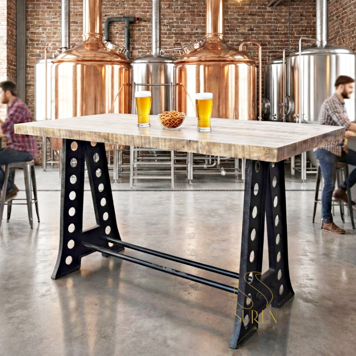 Cast Iron Heavy Base Mango Wood Bar Pub Table HOSPITALITY FURNITURE