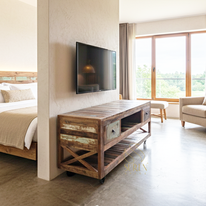 Indian Reclaimed Wood Wheel Base Entertainment Unit