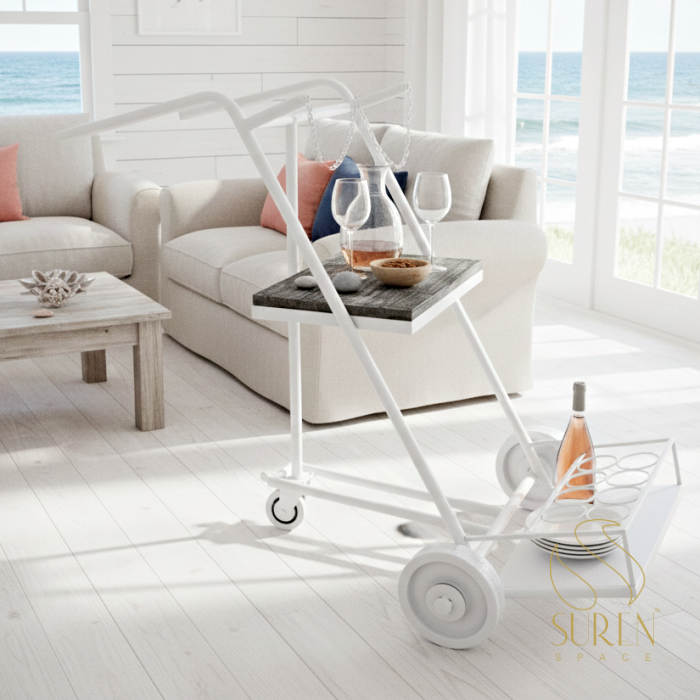 White Painted Industrial Kitchen Trolley OUTDOOR FURNITURE