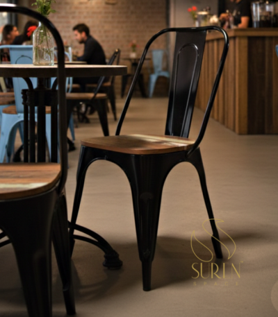 Black Distress Stackable Metal Popular Chair with Wood Seating