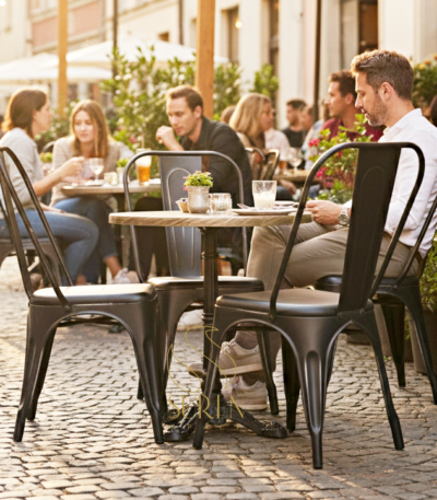Metallic Reclaimed Seat Industrial Restaurant Semi Outdoor Chair