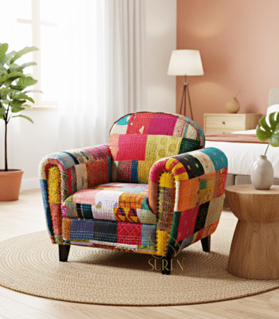 Multicolored Fabric Indian Touch Single Seater Sofa