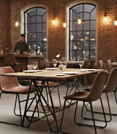 Metal Solid Wood Top Bistro Dining Industrial Table