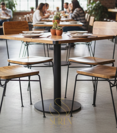 Metal Mango Wood Four Seater Bistro Café Dining Set-Up