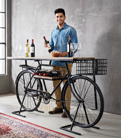 Bike Theme Metal Wooden Wine Cabinet